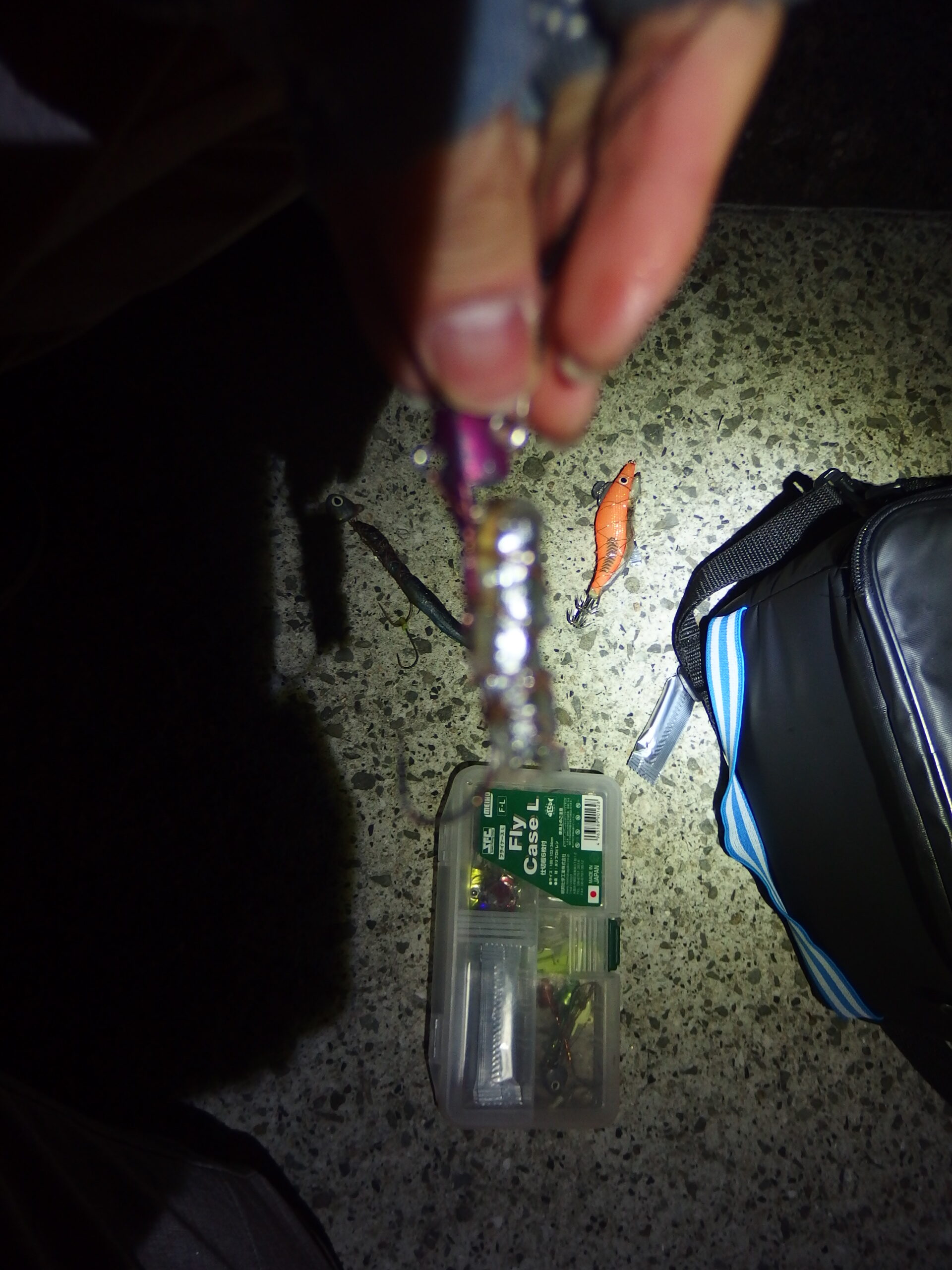 完全に暗くなって、周りもケミホタル投げだしたので、ワイも太刀魚に移行。